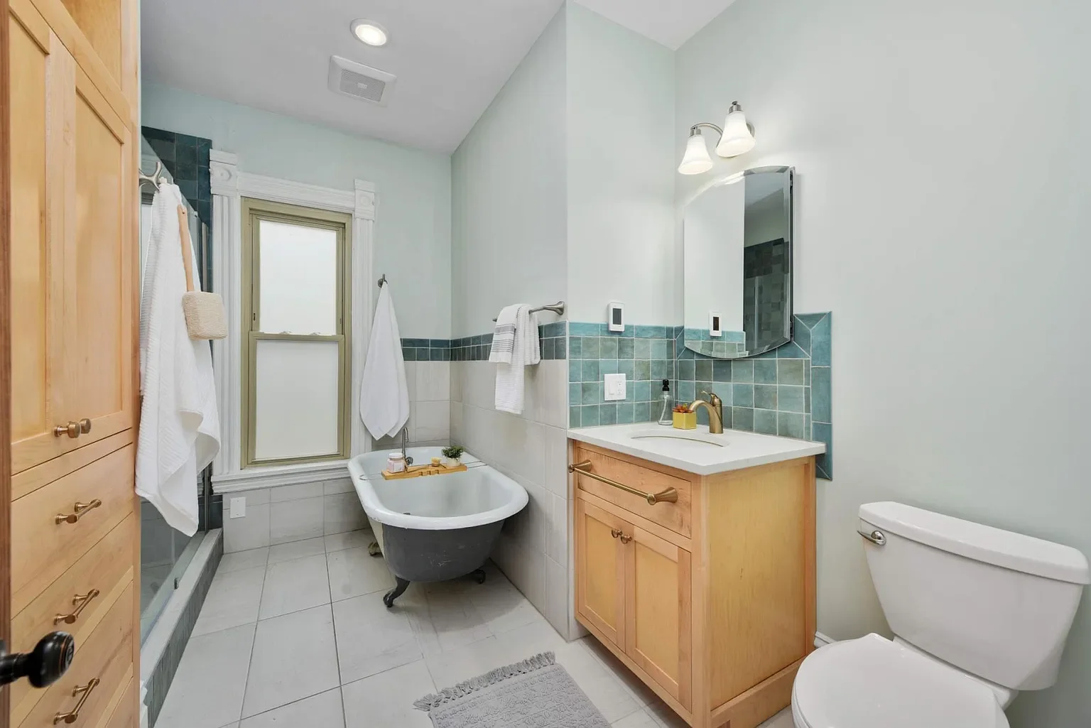 This project involved many aspects of this inspired brick victorian home, including installing two new bathrooms, moving walls, new windows, hardwood flooring, stained oak trim and adding mini-splits. We also relocated the laundry to the second floor.