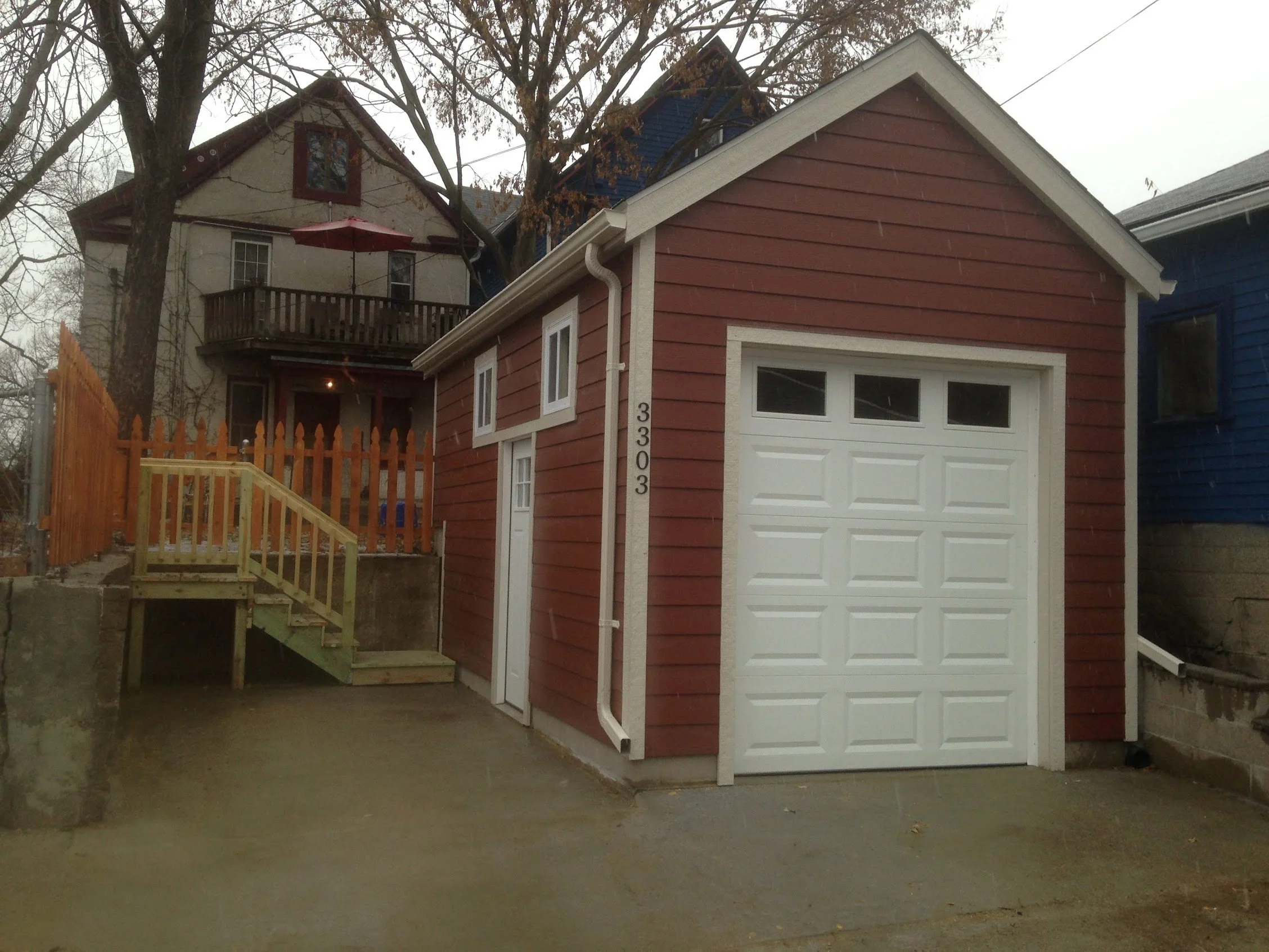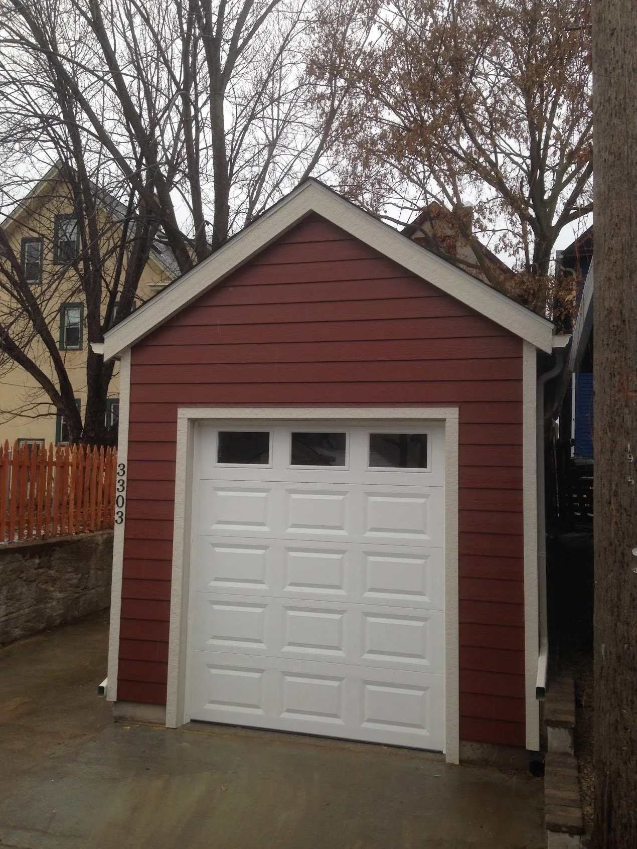 This project was a custom garage build in the powderhorn neighborhood. Prefinished fiber cement lap siding and trim make for a low maintenance take on a classic look.